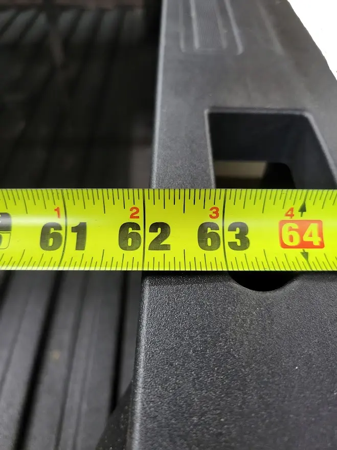 Example: This truck measures 62" at the rear, and 63.5" at the front of the bed.
