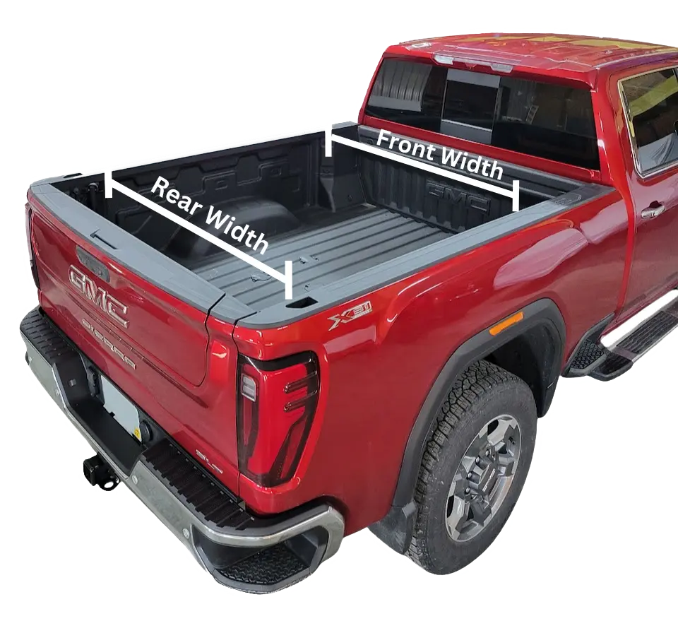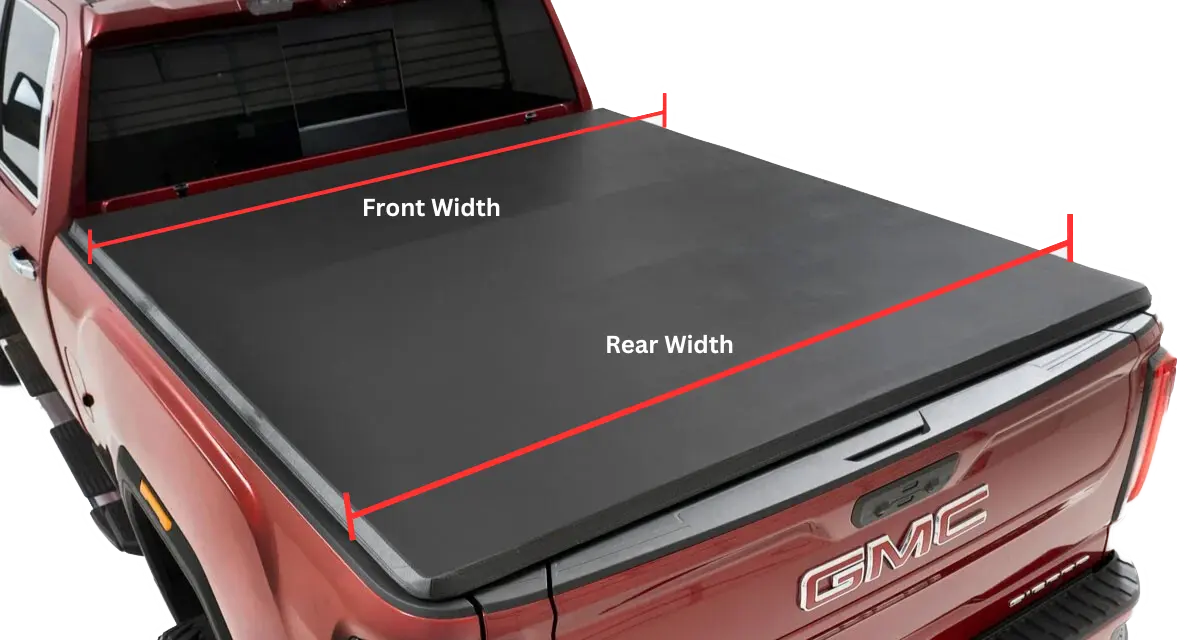 3. Subtract The Rear: Rear Inside Bed Width (62") - Rear Bed Cover Width (67.5") = 5.5" Rear Overhang